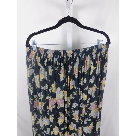 Vintage Carole Little Black Floral Pleated Maxi Skirt Elastic Waist Boho Witch L