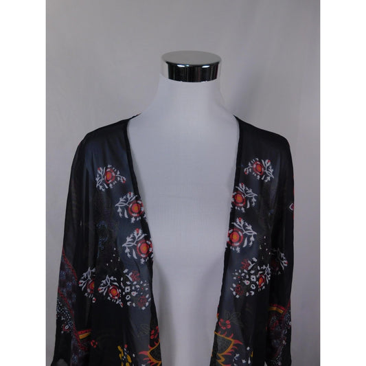 Boho Floral Paisley Kimono Sheer Cardigan Navy Black L
