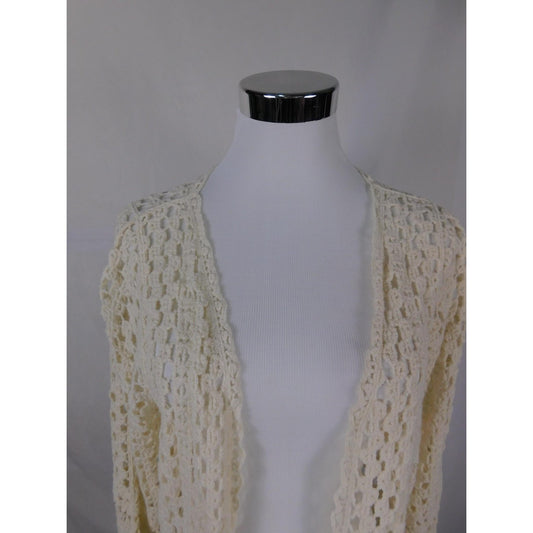 Boho White Crochet Lace Cardigan M - Open Front Scalloped - Excellent