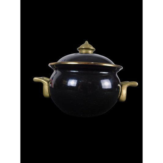 Black Gold Metal Cauldron Pot w Lid Witchcore Altar Decor Vintage