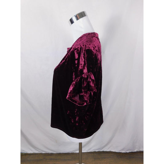 Altar'd State Shirt Womens Small Burgundy Crushed Velvet Short Ruffle Sleeve Top
