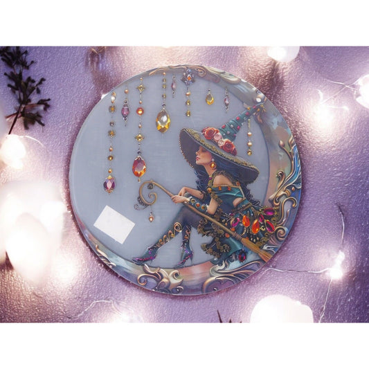 Crystal Moon Witch Suncatcher Acrylic 8"x8" Wall Hanging Art Décor