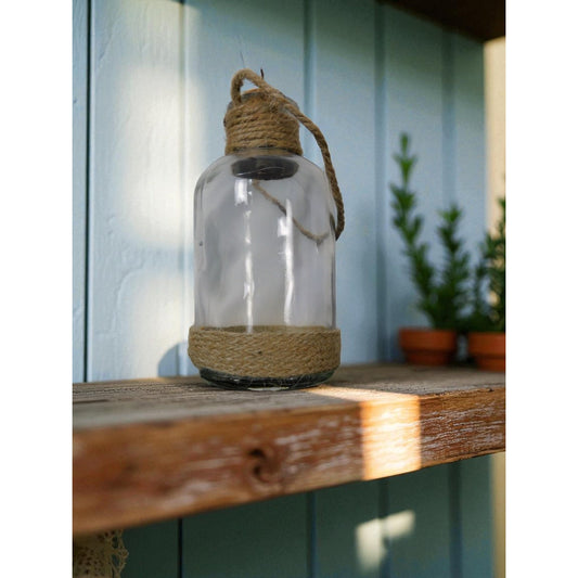 Vintage Glass Apothecary Jar Cork Lid Rope Handle Rustic Storage Bottle Decor 80