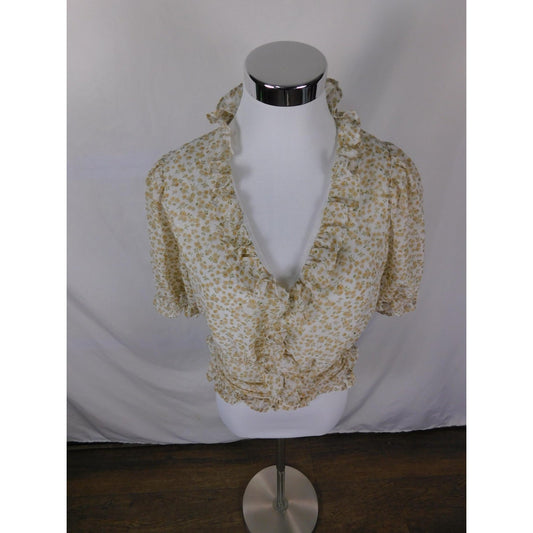 Iris White Yellow Floral Ruffle Peplum Top S - Boho Blouse - Excellent