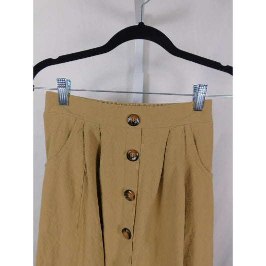 Naggoo Medium Khaki Button Front A-Line Midi Skirt Pockets