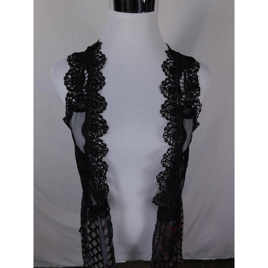 No Boundaries Black Floral Lace Vest M - Sheer Boho Open Front - Excellent