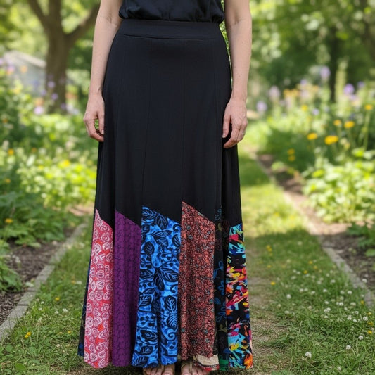 Sweet Threads Small Boho Patchwork Maxi Skirt Smocked