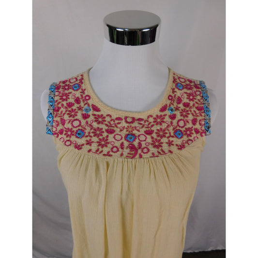 World Market S/M Yellow Embroidered Boho Mirror Cutout Top