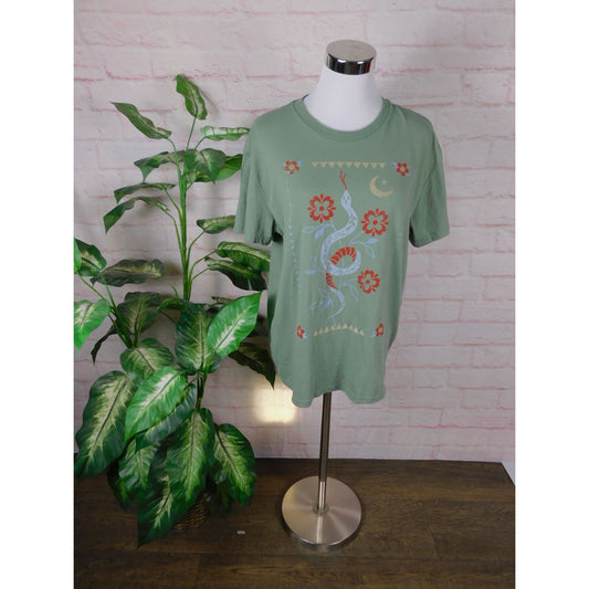 Snake Moon Graphic Tee Green Shirt Womens M Soft