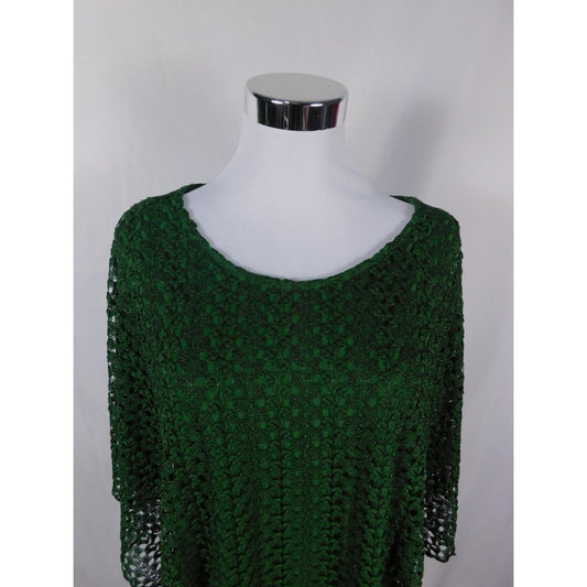 Olivia Blu XL Green Crochet Lace Poncho Blouse Boho Witch