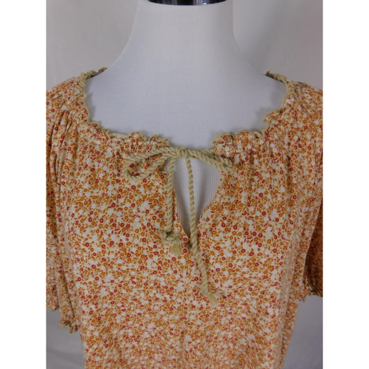 Wonderly Orange Floral Peasant Top 2X - Boho Ruffle Tie - Excellent