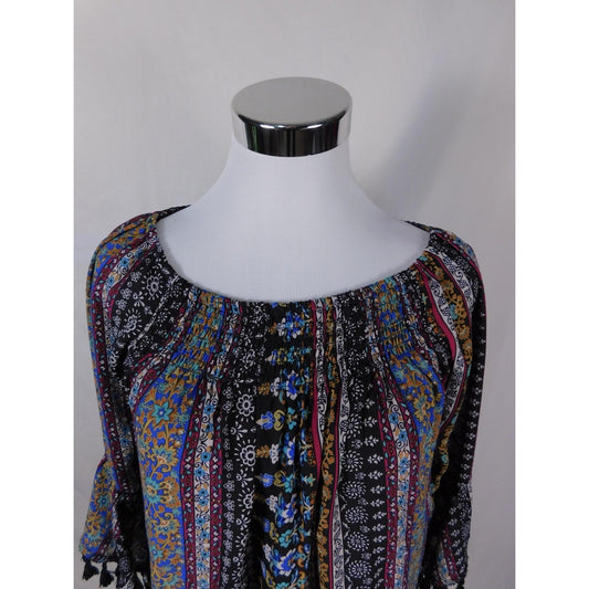 Westport Black Multicolor Boho Peasant Top XS - Bell Sleeve Tassel - Excellent