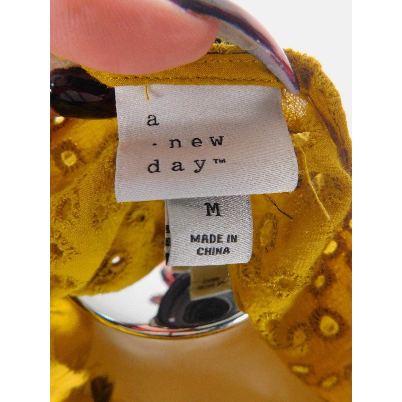 A New Day Mustard Eyelet Ruffle Sleeve Top Boho Witch M