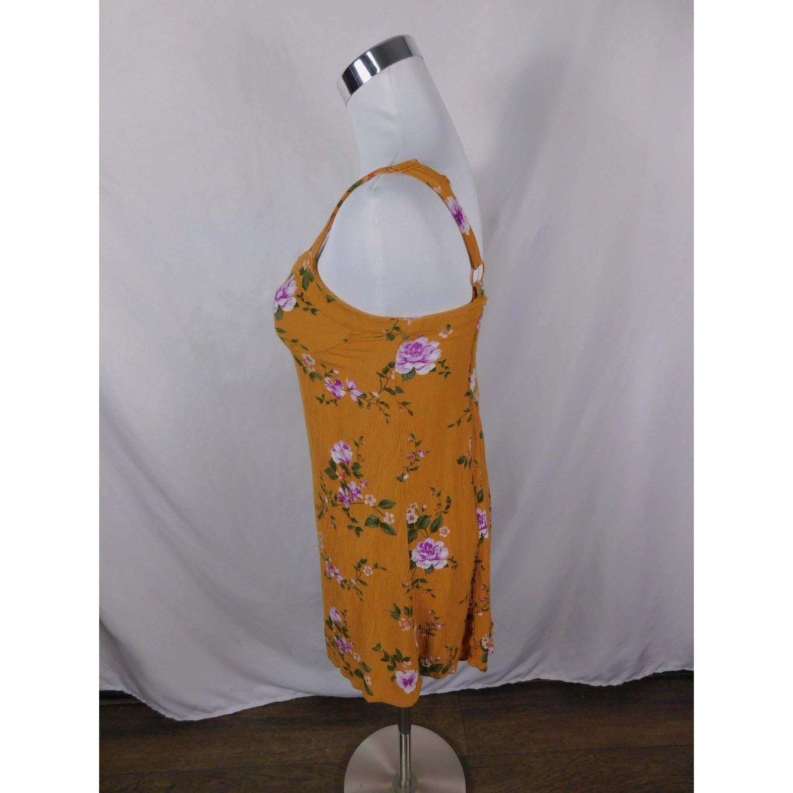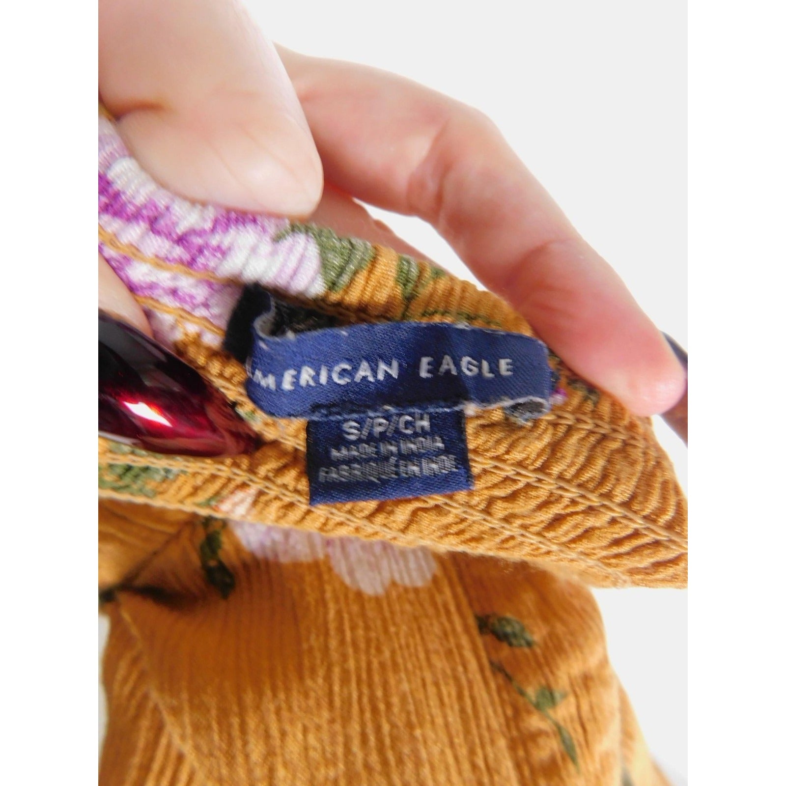 AE Small Yellow Floral Button Front Sundress Crinkle Boho