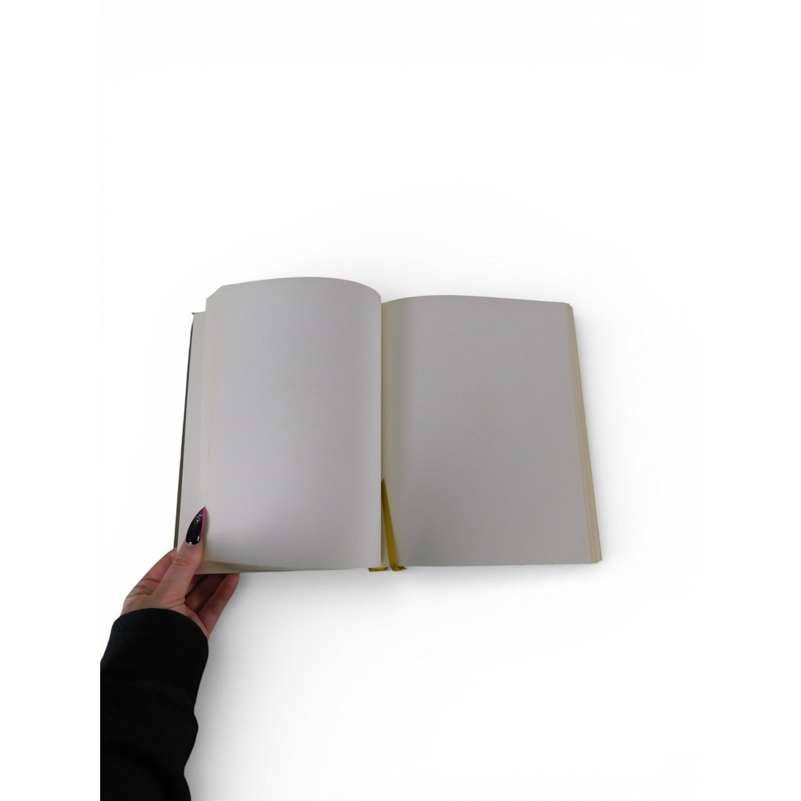 Condition: Light shelf wear to covers, spine ends, and corners with a few small surface scuffs; page edges show a faint smudge near the attached ribbon marker; interior pages are clean, blank, and unused with no writing, highlighting, or tears.