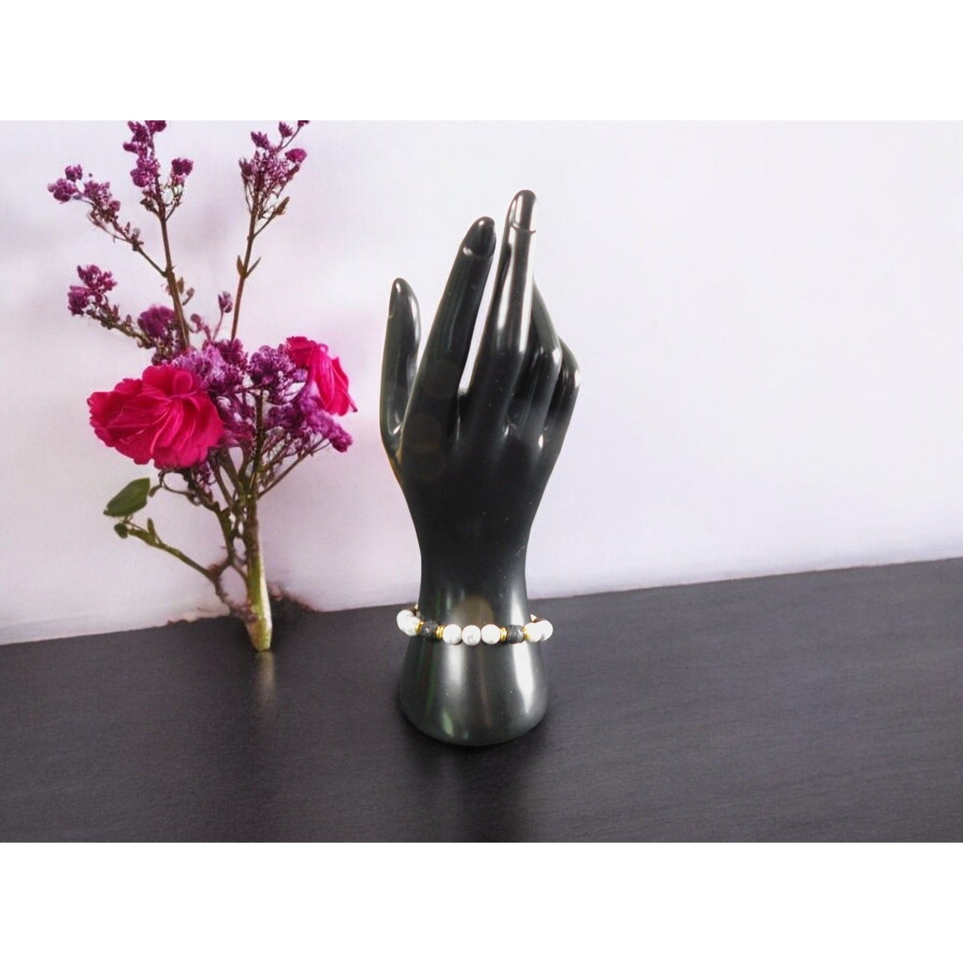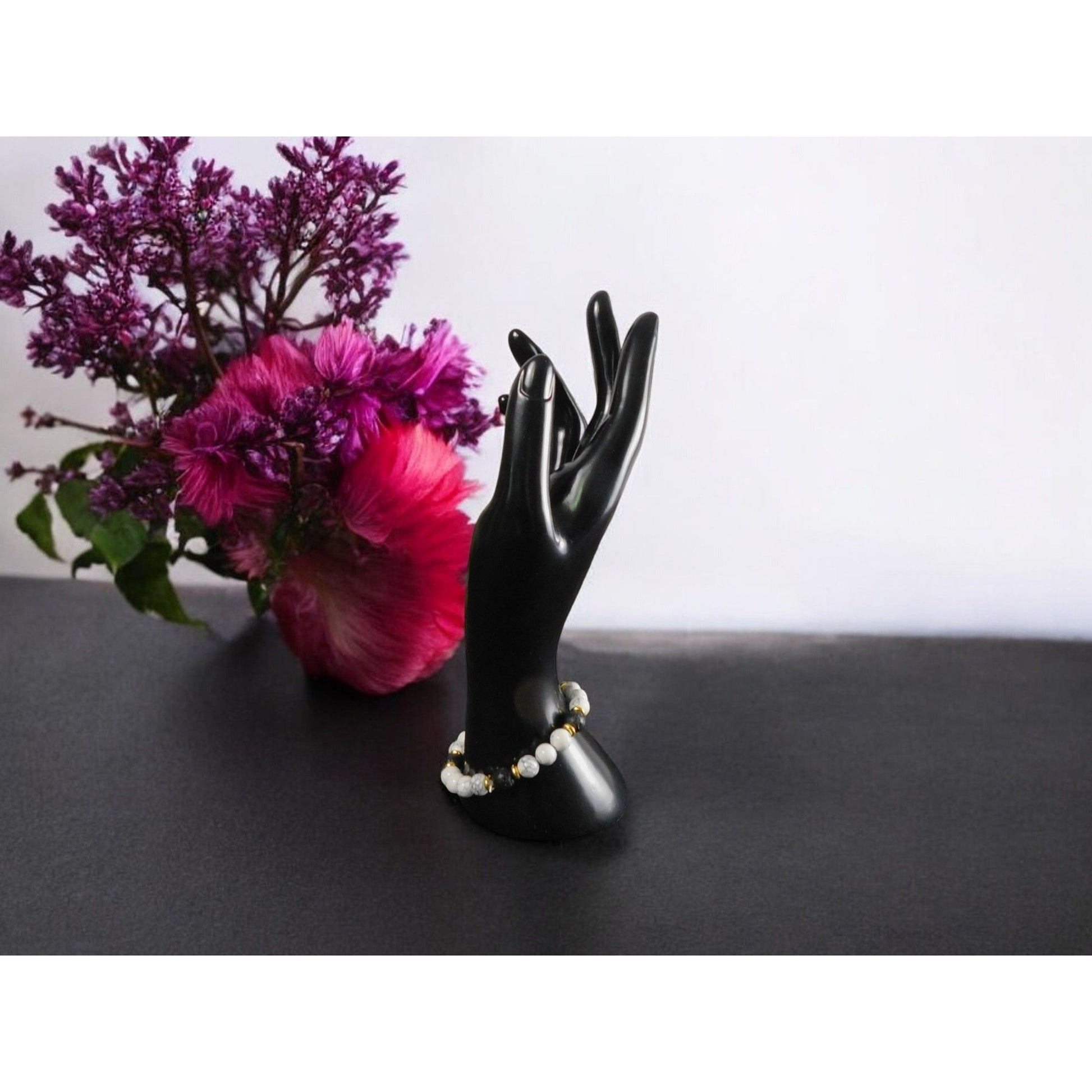 In a dance of serenity and grounding, the Howlite and Lava Stone bracelet becomes an ally in the quest for tranquility. The Howlite whispers calming tales to the spirit, while the Lava Stone, a conduit of the earth's strength, awaits the fragrance of essential oils to diffuse peace.