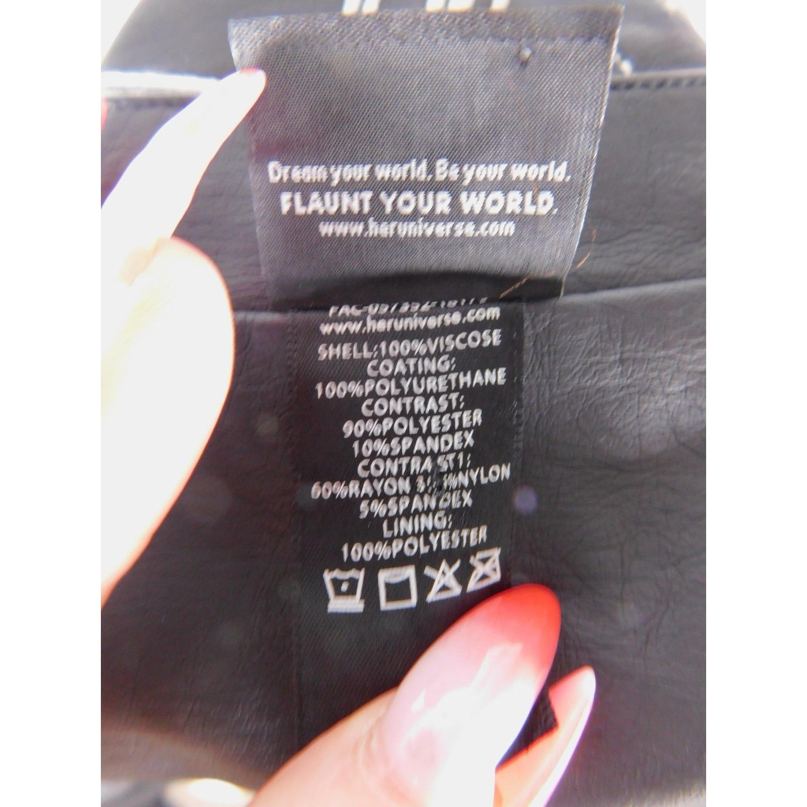 Summon storm-runes in this pre-owned MARVEL by Her Universe women’s L black faux leather open-front jacket — draped waterfall lapels flow like Valkyrie wings, back blazes embroidered “GOD OF THUNDER” with glowing Mjolnir & lightning bolts. Soft spandex side panels, zip pockets, true Large fit (bust 40–42", approx 26" long). Perfect power cloak for comic cons, rituals, or everyday Asgardian energy.