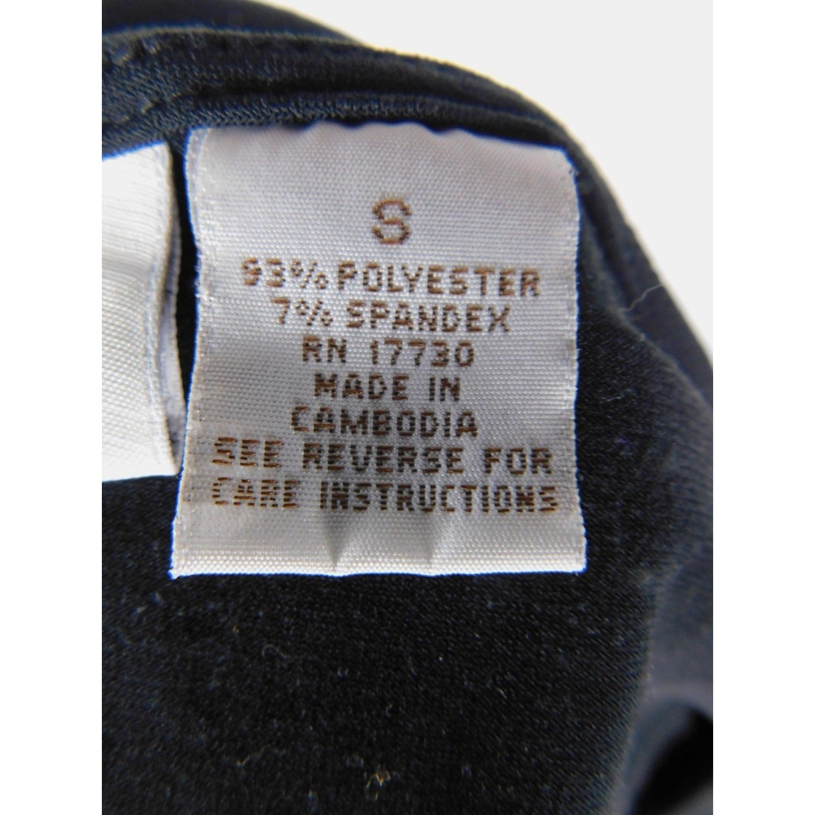 Manufacturing details: Made in Cambodia; RN 17730; additional tag code VN 3481882.