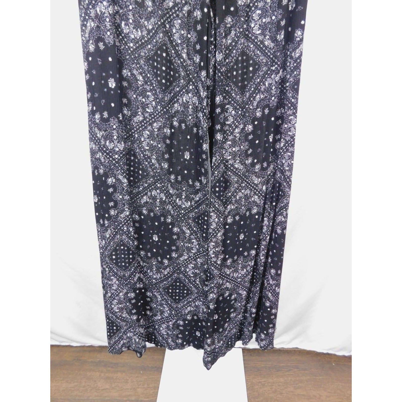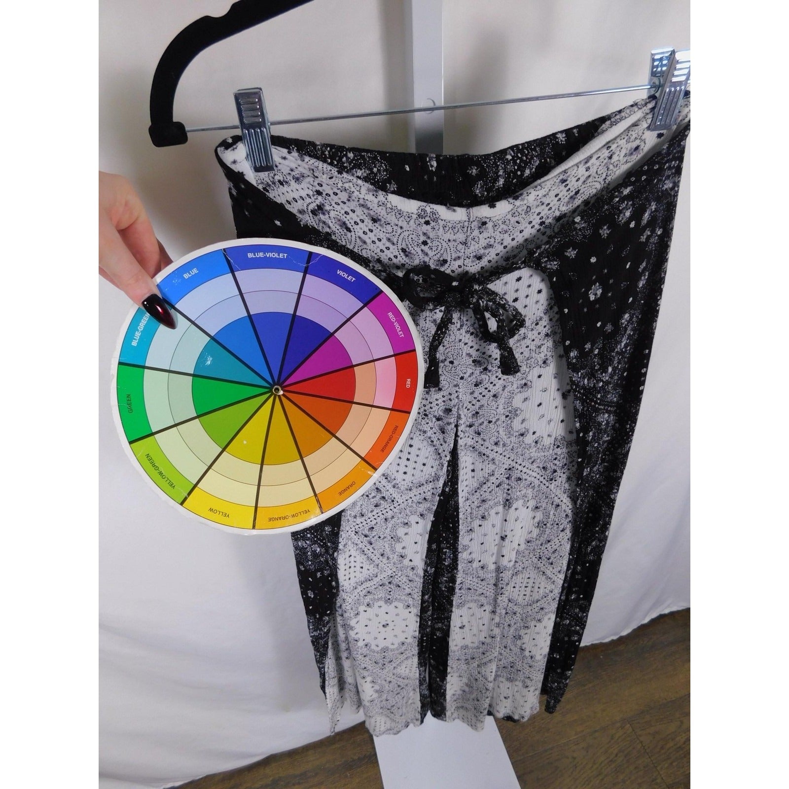 Flow with bohemian mystique in these No Boundaries black and white paisley bandana-print palazzo pants, wide-leg for enchanted comfort. Women’s small (~26–28-inch waist, ~30-inch inseam), true to fit. No flaws, excellent pre-owned condition—cleansed under starlight. Pair with a crop top and moonstone pendant for Boho Witch vibes. Ships swiftly from The Witch’s Quest. Explore more charmed styles at !