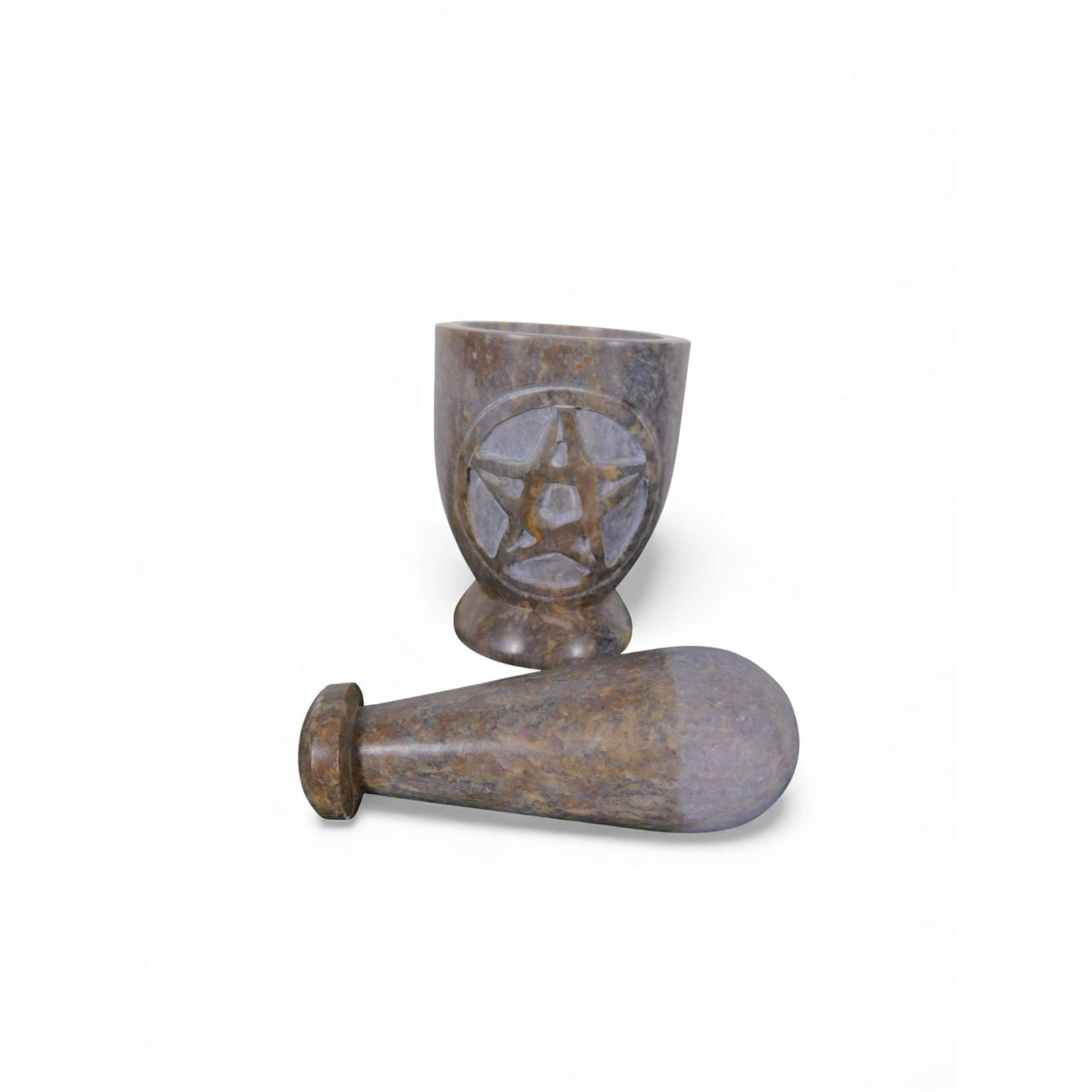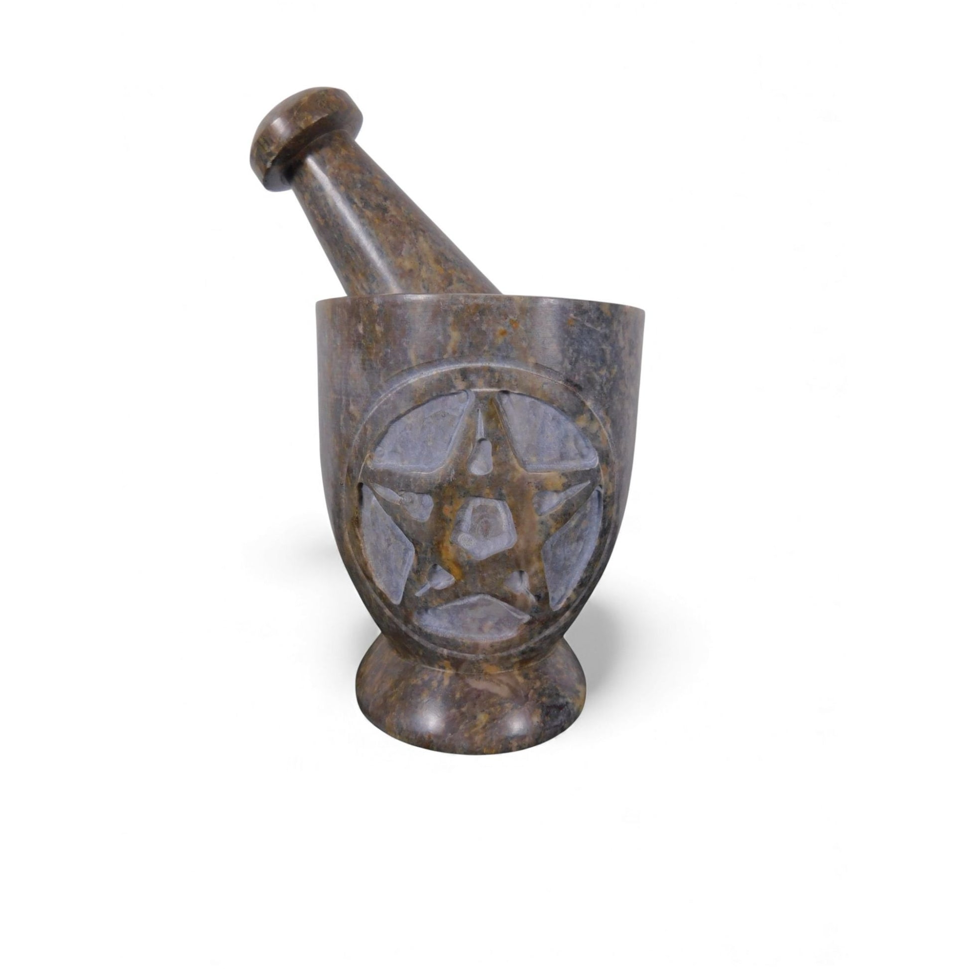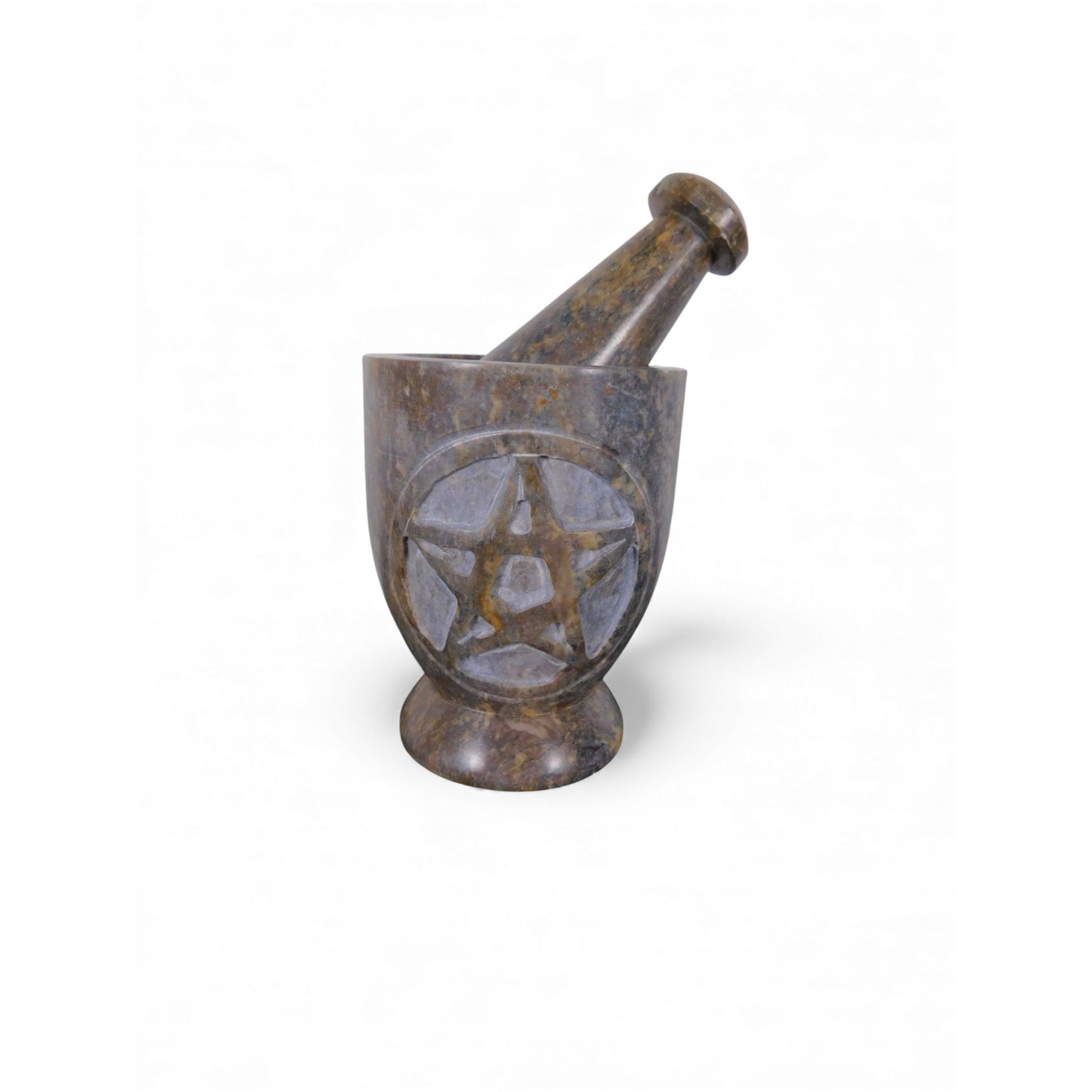 Pentacle Carved Soapstone Mortar & Pestle 4"H × 3"D - Ritual Grinder - New