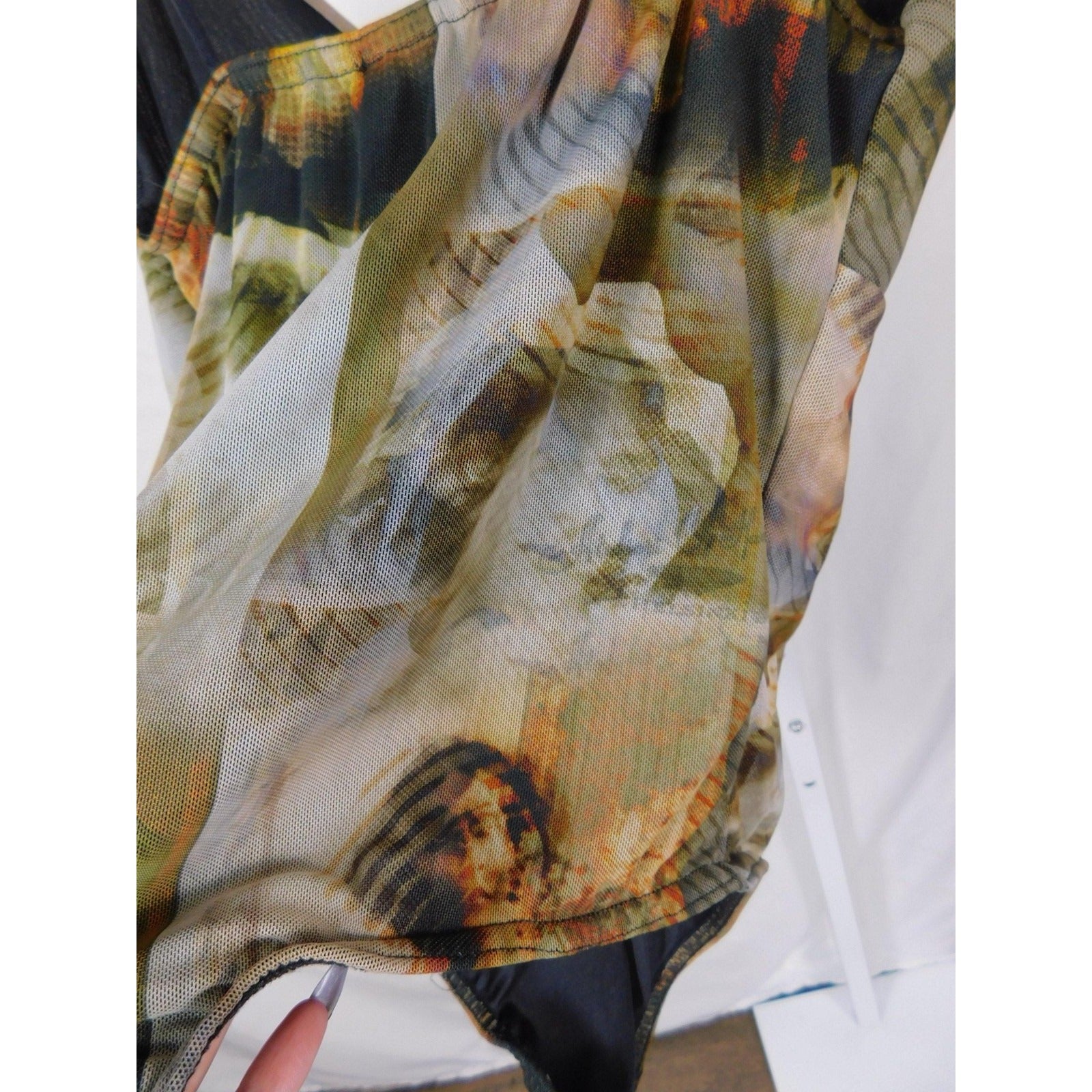 PrettyLittleThing Mesh Renaissance Bodysuit 8 - Sheer Print Snap - Excellent