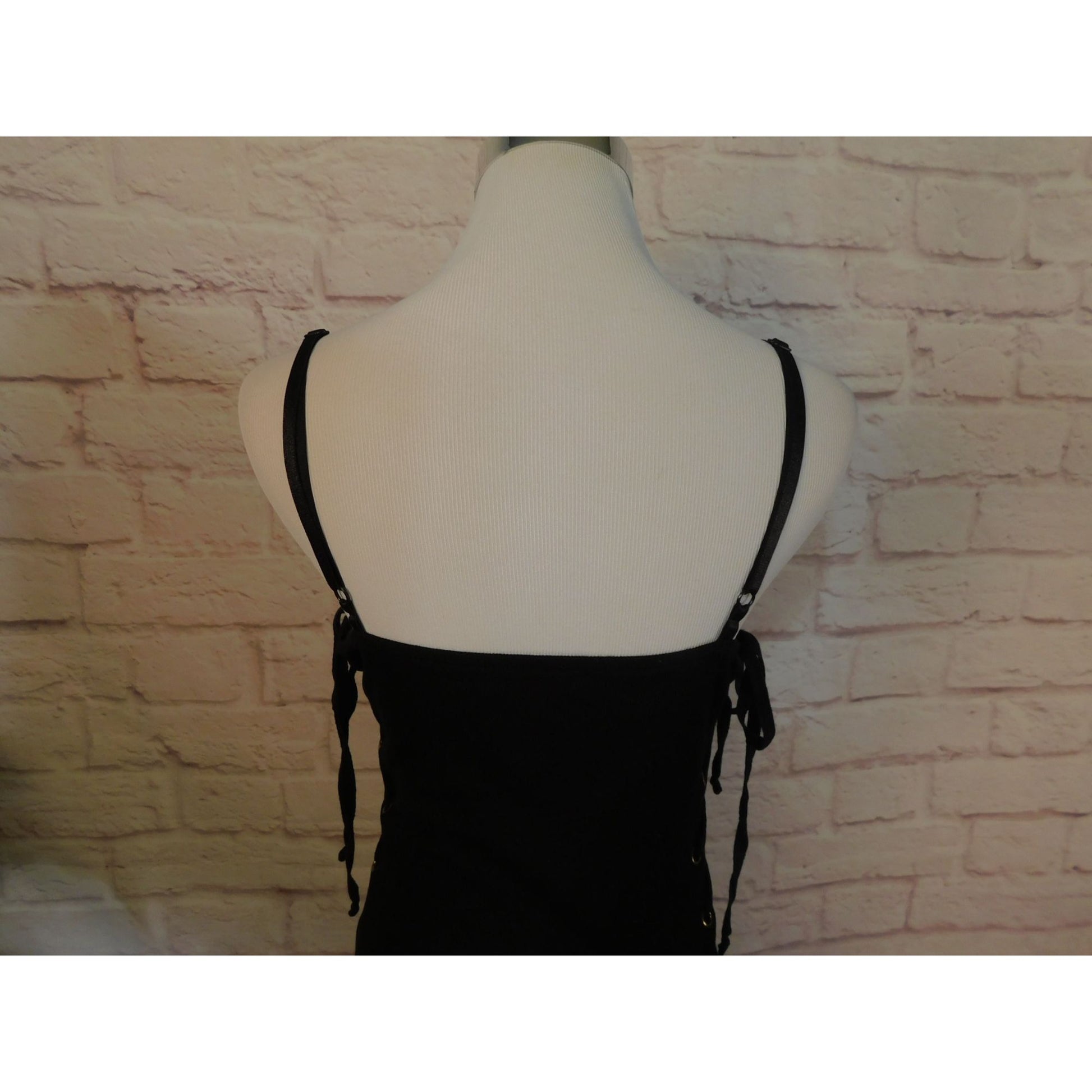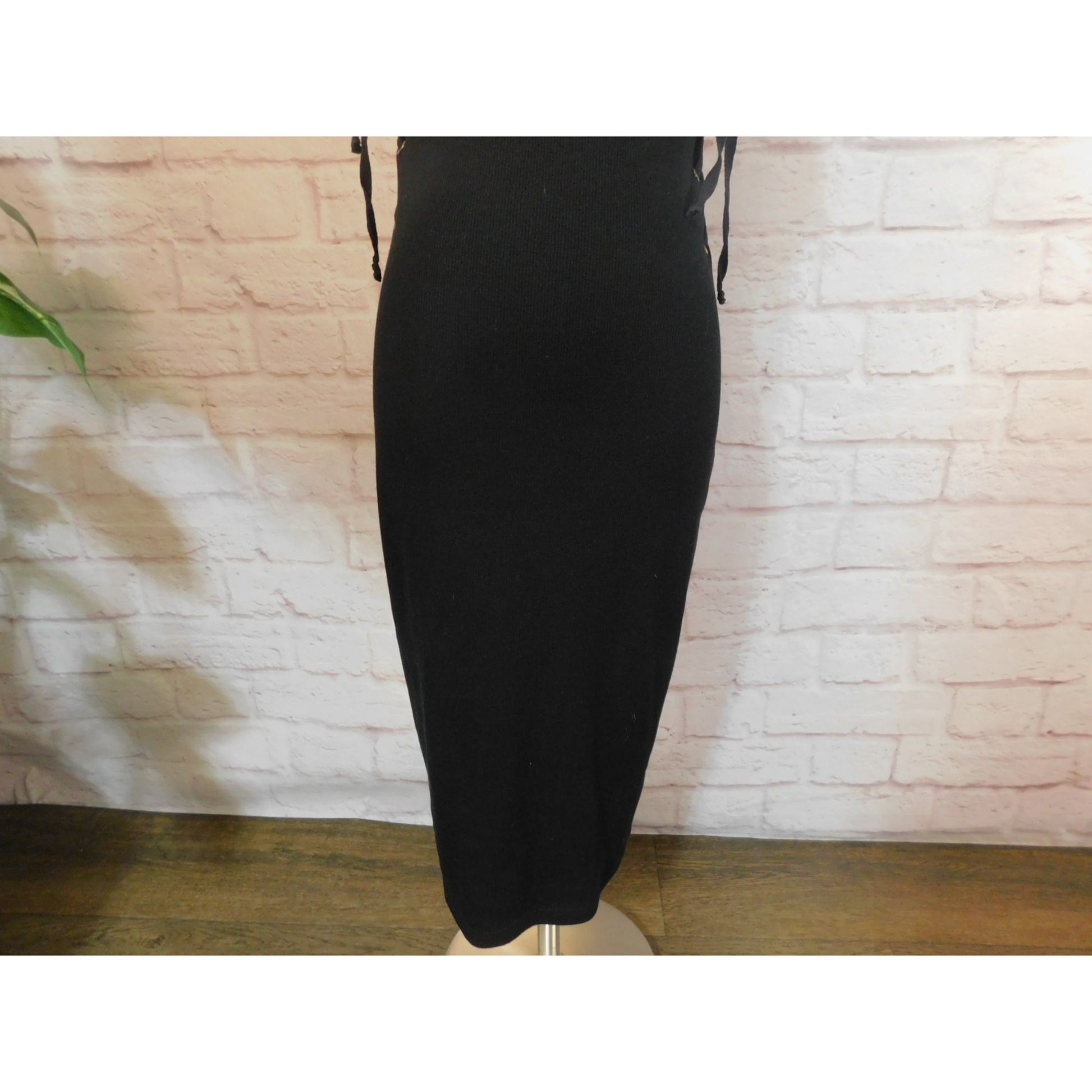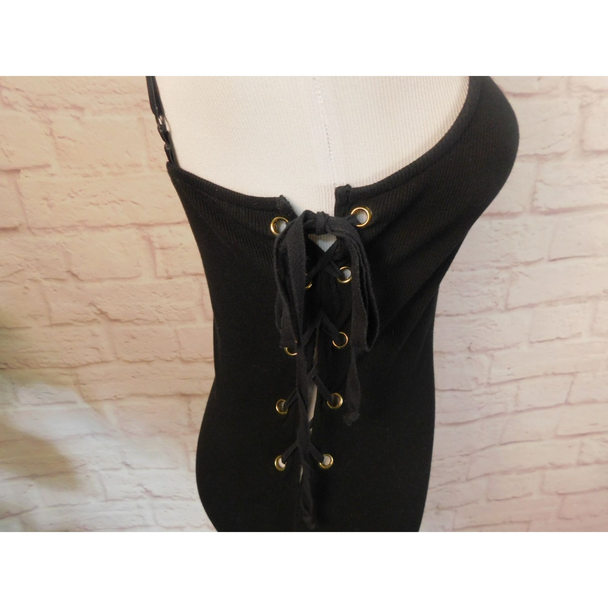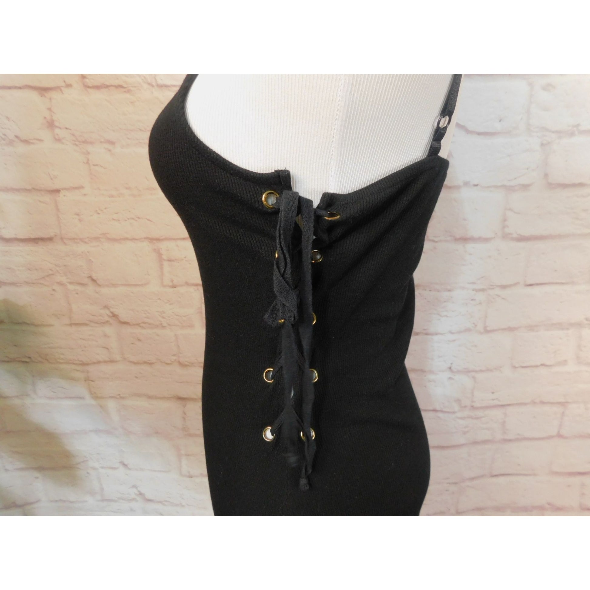 Say What? Black Ribbed Cotton Midi Bodycon Dress With Lace-Up Sides M