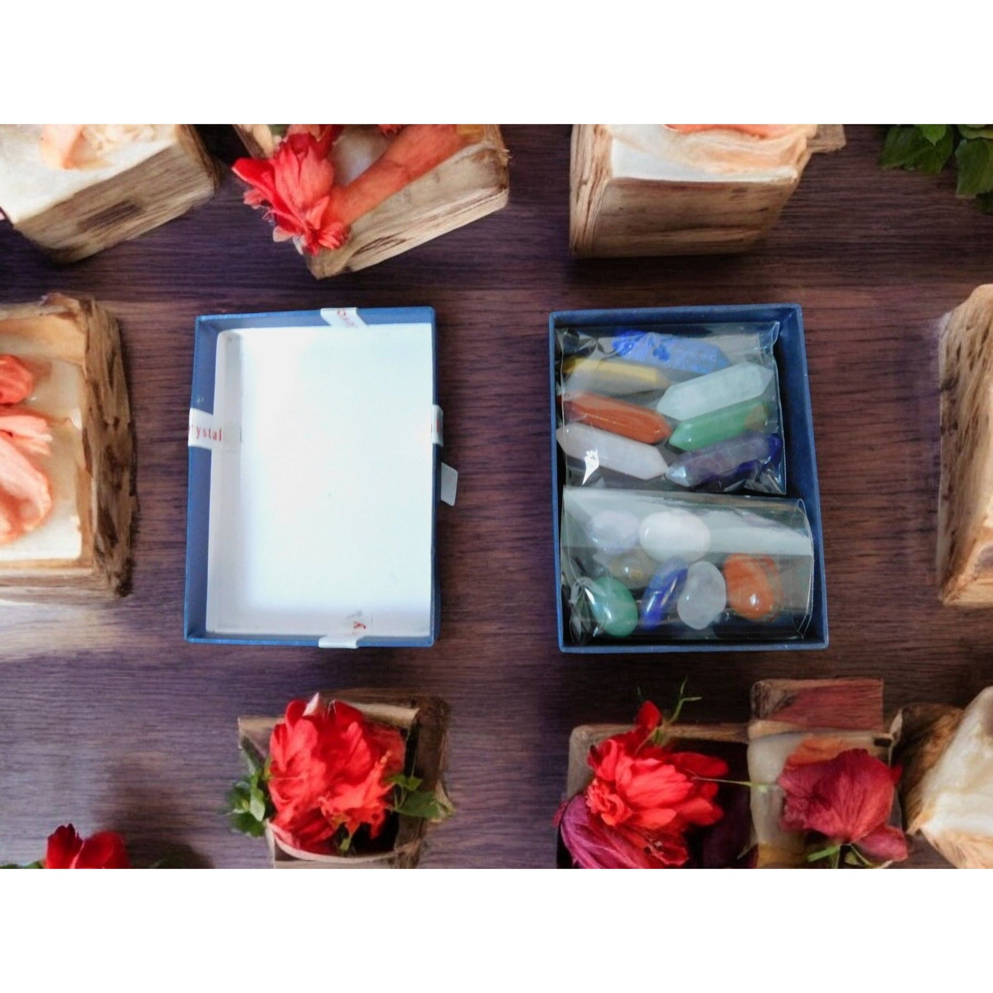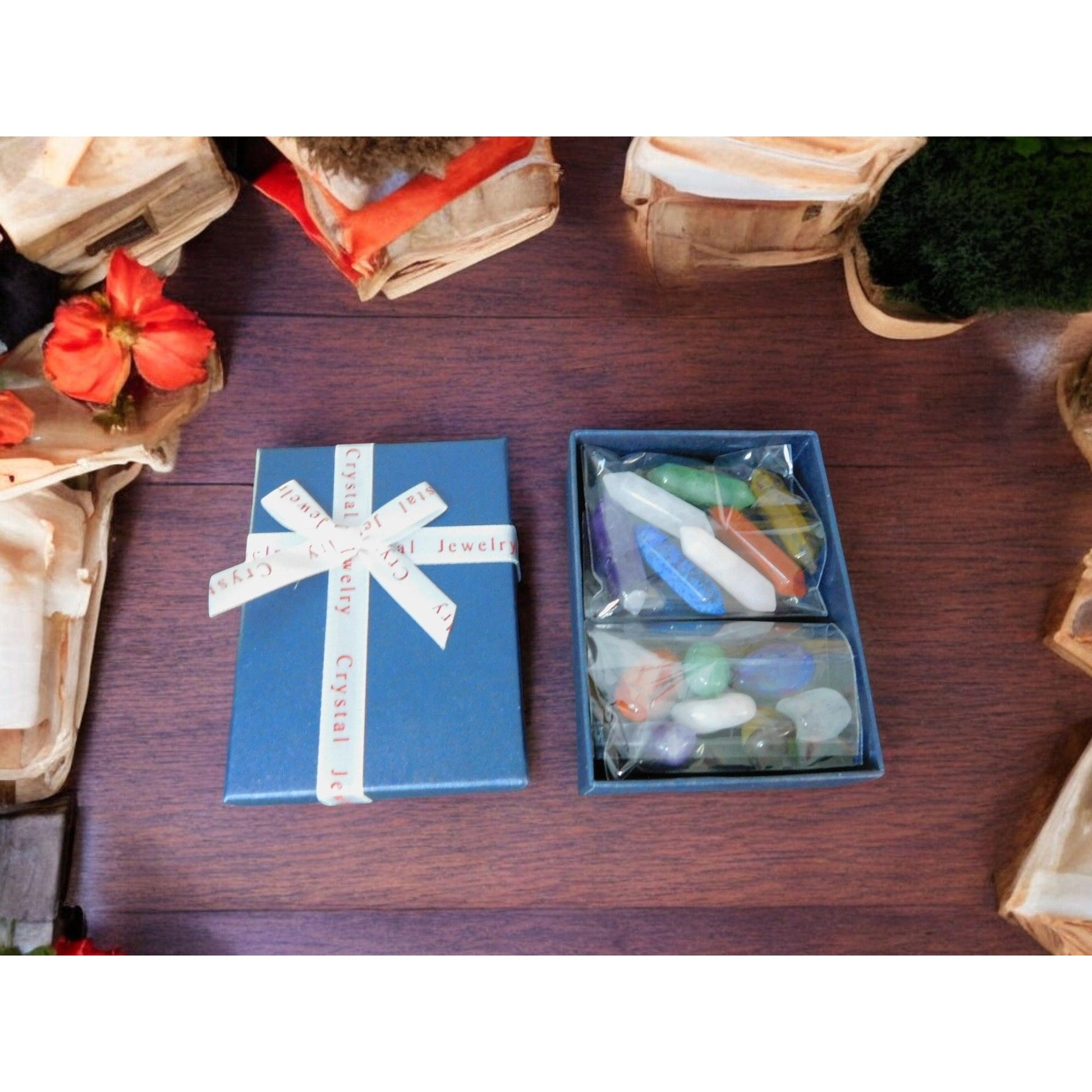 This gemstone collection is an exquisite assortment of polished crystals, thoughtfully curated to inspire and enchant. Each stone tells a story of the earth's ancient beauty, captured in vibrant hues and unique shapes. Presented in a luxurious gift box adorned with a delicate ribbon, it offers both elegance and mystery.