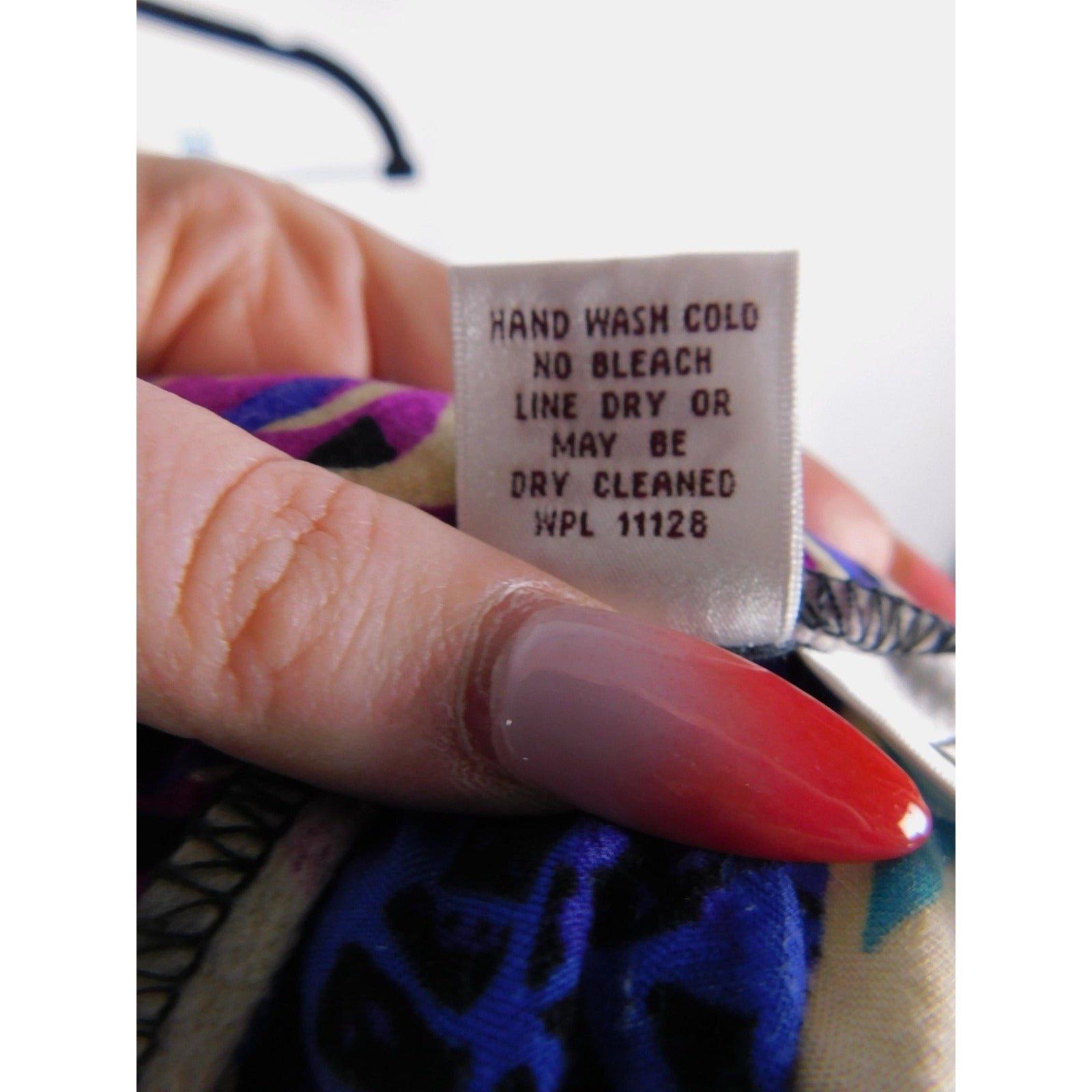Bloom in midnight tropics with this pre-owned Worthington size 8 90s maxi (38" long, 14" waist)—cobalt base erupts in red, purple, teal & ivory hibiscus, front pleats swirl like ocean spells, fabric buttons seal the high waist. Hand-washable USA-made flow; perfect for Earth & Nature witch rituals or moonlit markets. The Witches Quest curation.