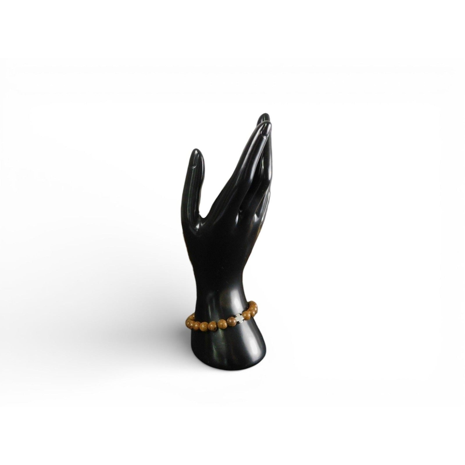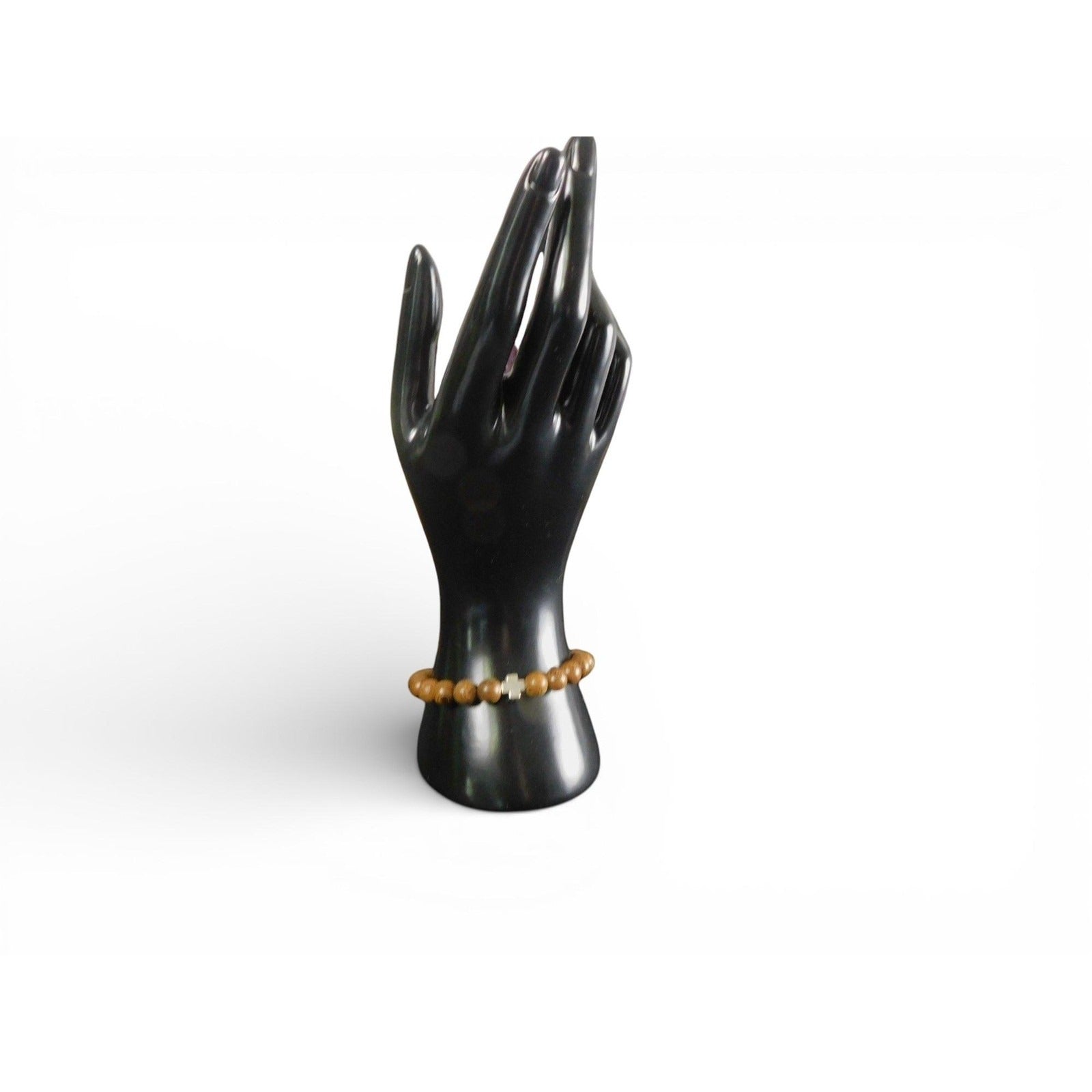 Wooden Cross Beaded Stretch Bracelet 8mm Unisex Religious Jewelry