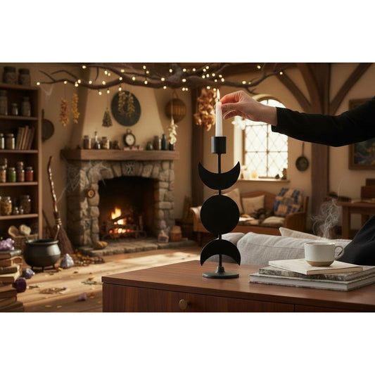 Triple Goddess Moon Metal Candle Holder Gothic 12in