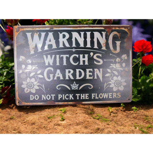 Warning Witch's Garden Metal Tin Sign 12x8 Vintage Gothic Decor