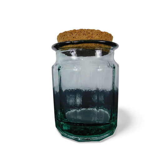 Green Glass Storage Jar With Cork Lid Kitchen Canister Rustic Decor Vintage