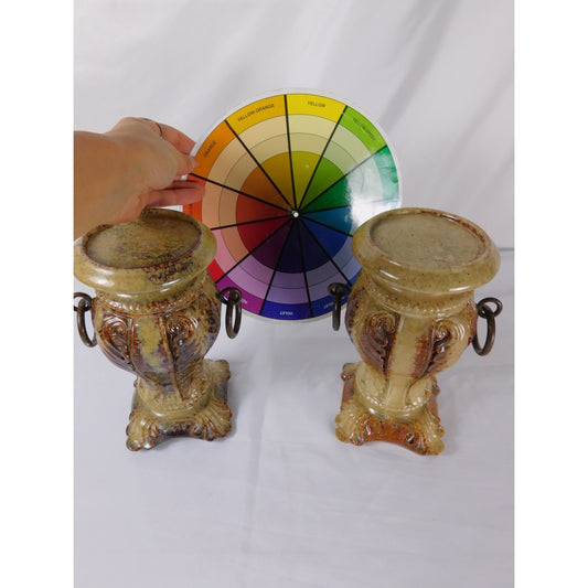 Vintage Ceramic Urn Candle Holders Pair 8" Ornate Handles Marked 5091/1 Decor
