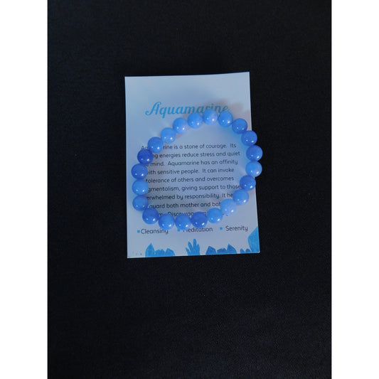 Aquamarine Bead Bracelet Stretch Calming Stone Meditation Cleansing Serenity Yog