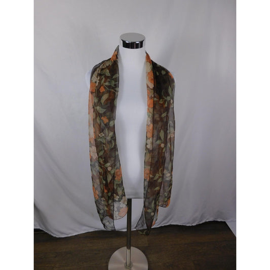 Unified Title "Brown Orange Floral Chiffon Scarf Sheer Boho OS