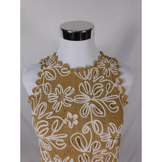 Solitaire Shirt Womens Small Tan White Crochet Floral Sleeveless Boho Top