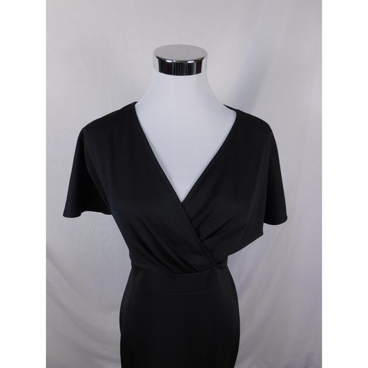 Grace Karin Black Wrap Midi Dress S - Flutter Sleeve Sheath - Excellent