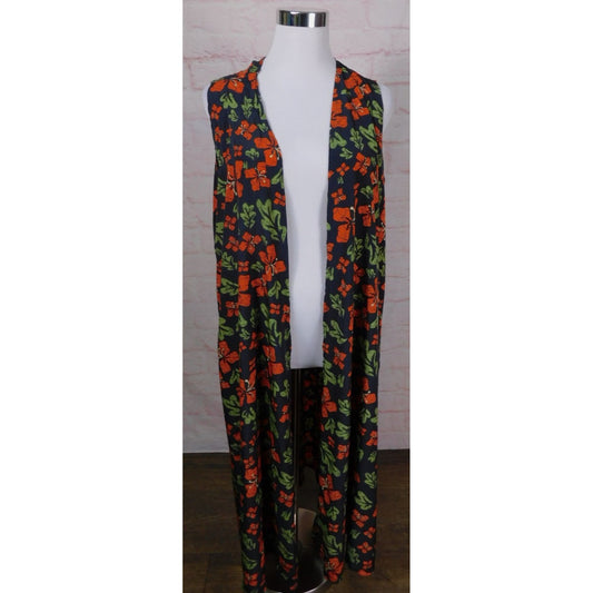 LuLaRoe Navy Floral Duster Vest L - Long Open Front - Excellent