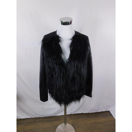 Libby Edelman Black Faux Fur Jacket S - Shaggy Leather Look - New
