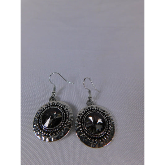 Boho Dangle Earrings Silver Tone Faceted Black Stone Statement Beaded Pierced Wo