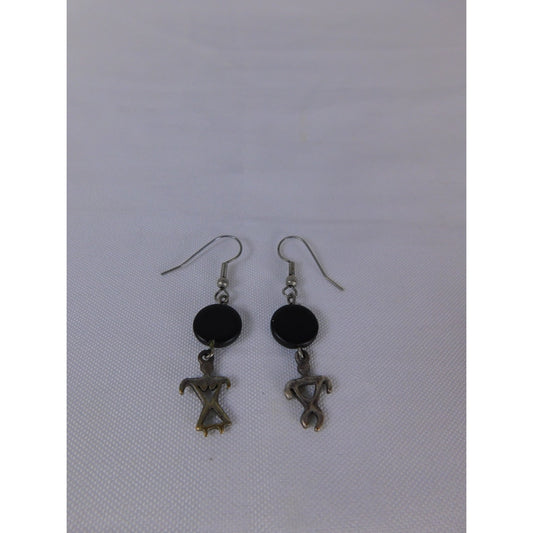 Vintage Tribal Figure Dangle Earrings Black Bead Artisan Boho Jewelry Women