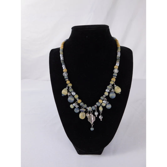 Vintage Handmade Beaded Necklace Silver Tone Dangle Boho Unique Statement Jewelr