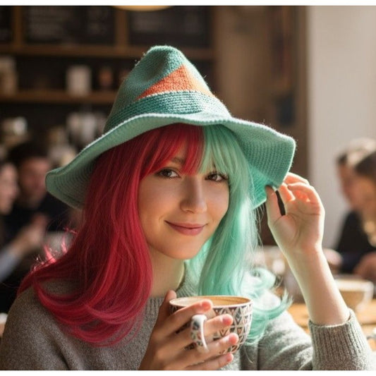 Green Knit Witch Hat Soft Point Cottagecore Hedge Witch NEW