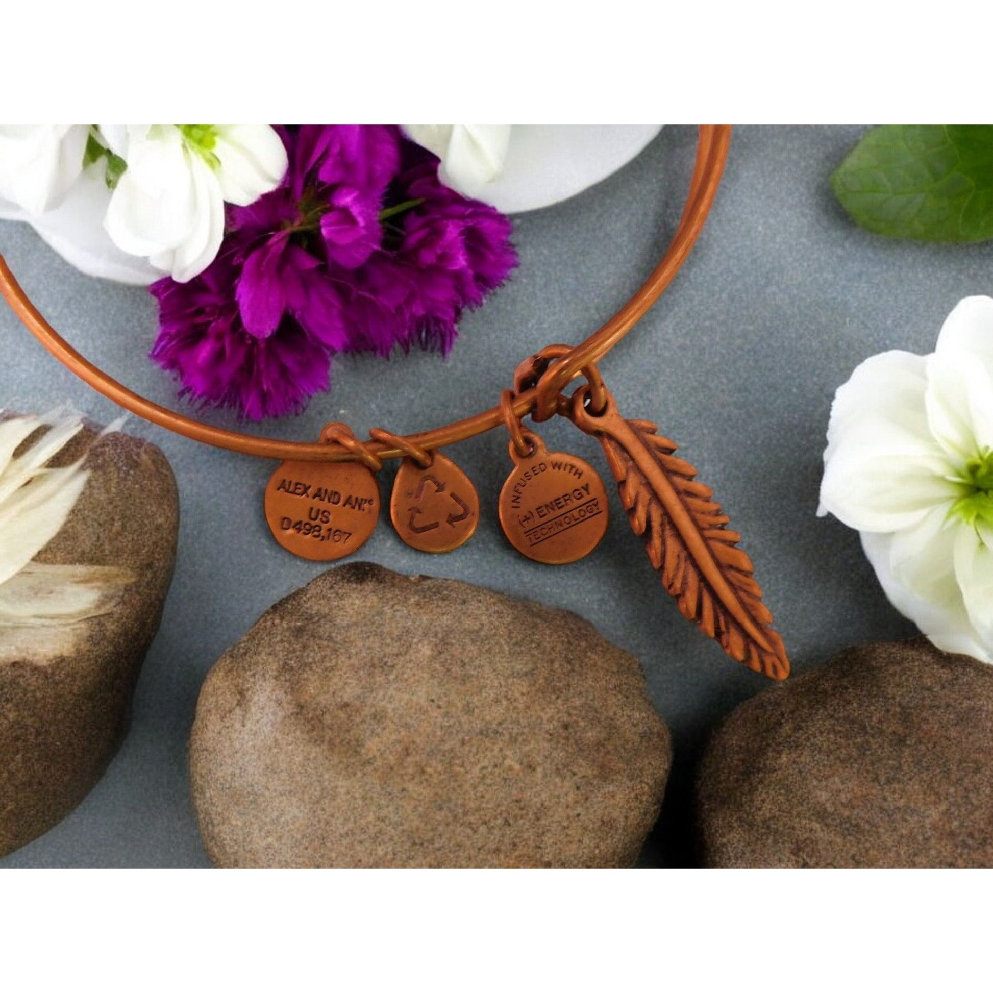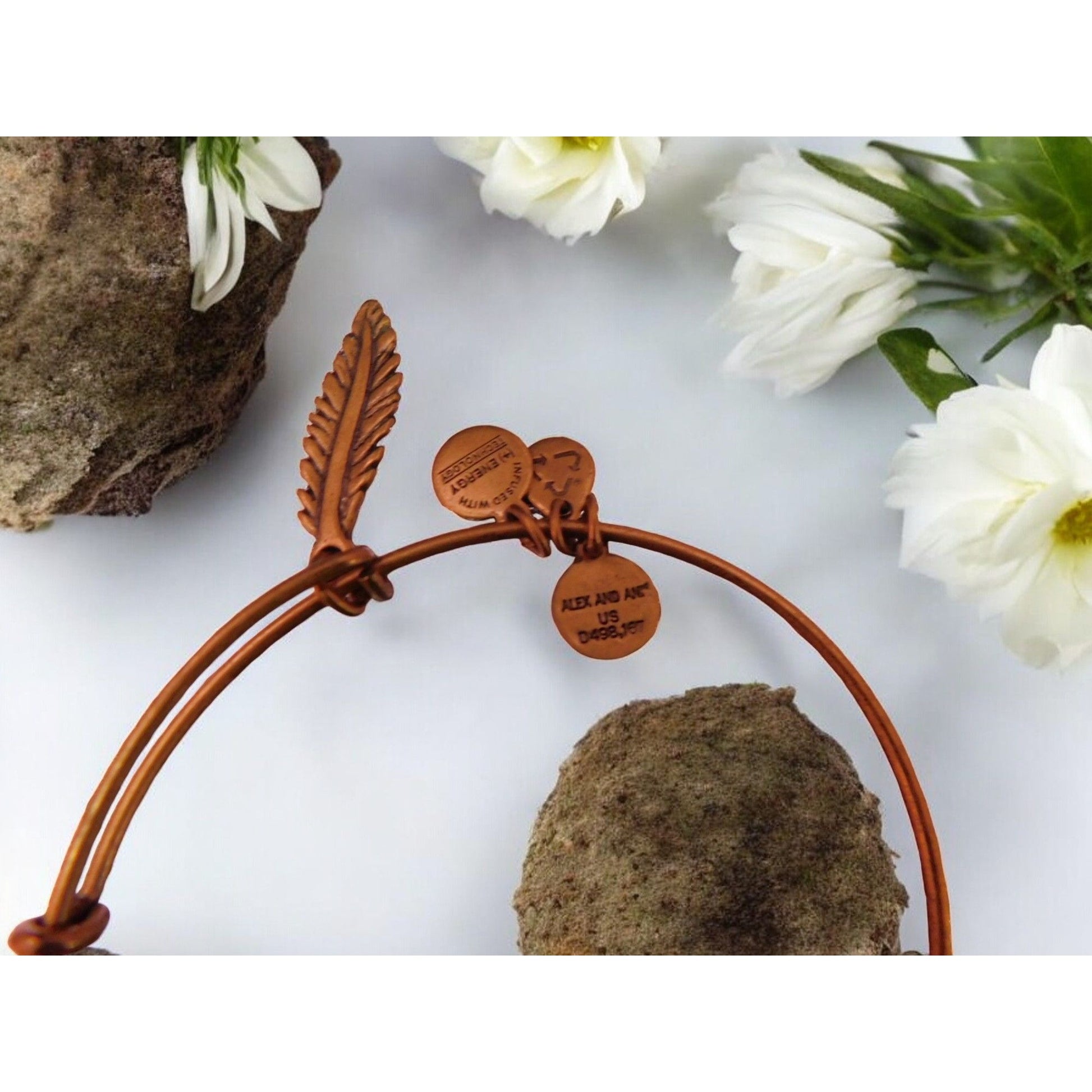 Alex and Ani Feather Charm Gold-Tone Bangle - Boho Chic Bracelet