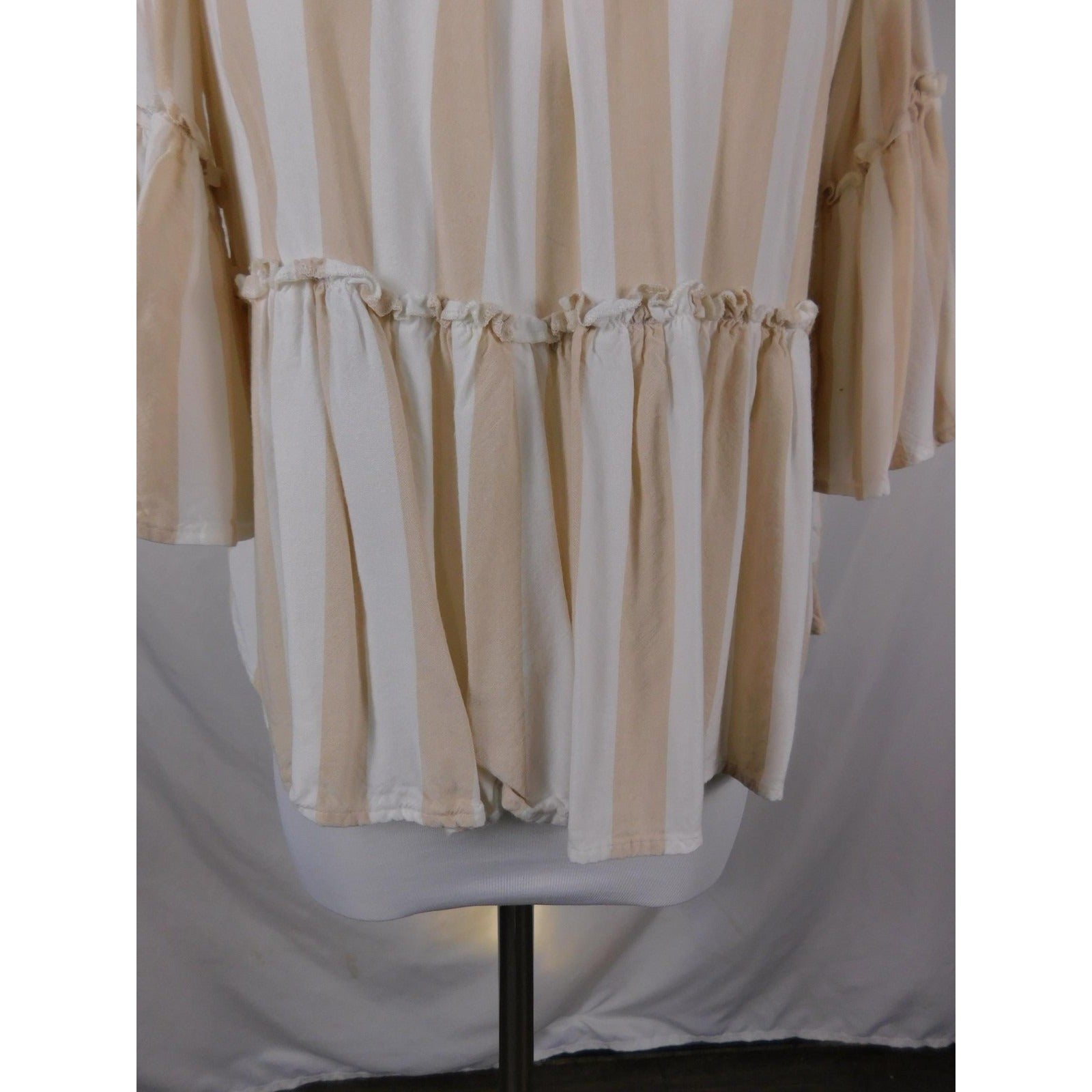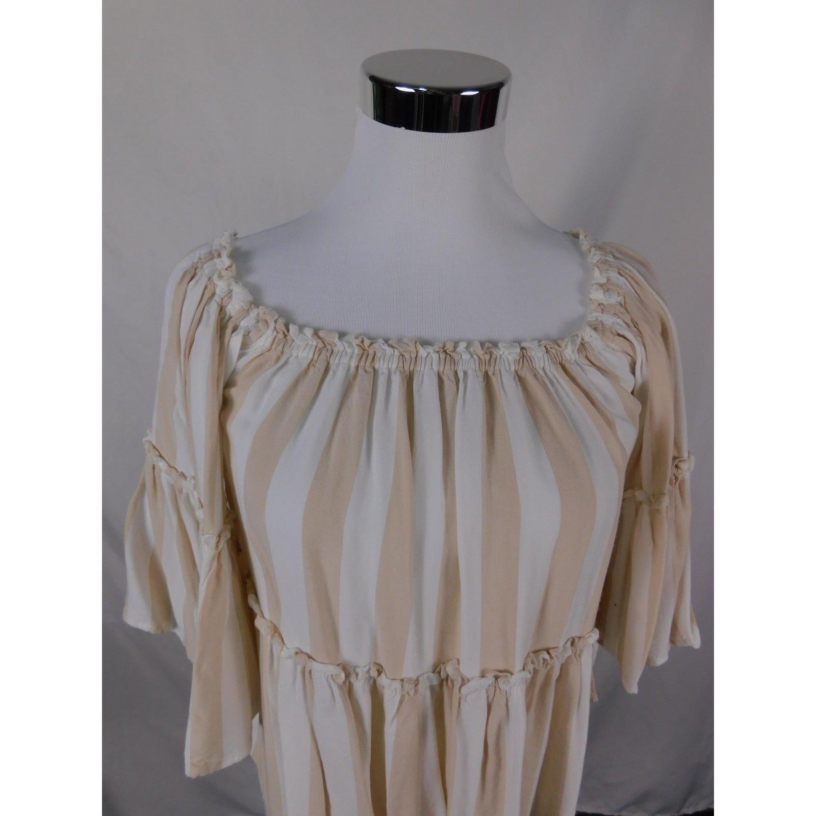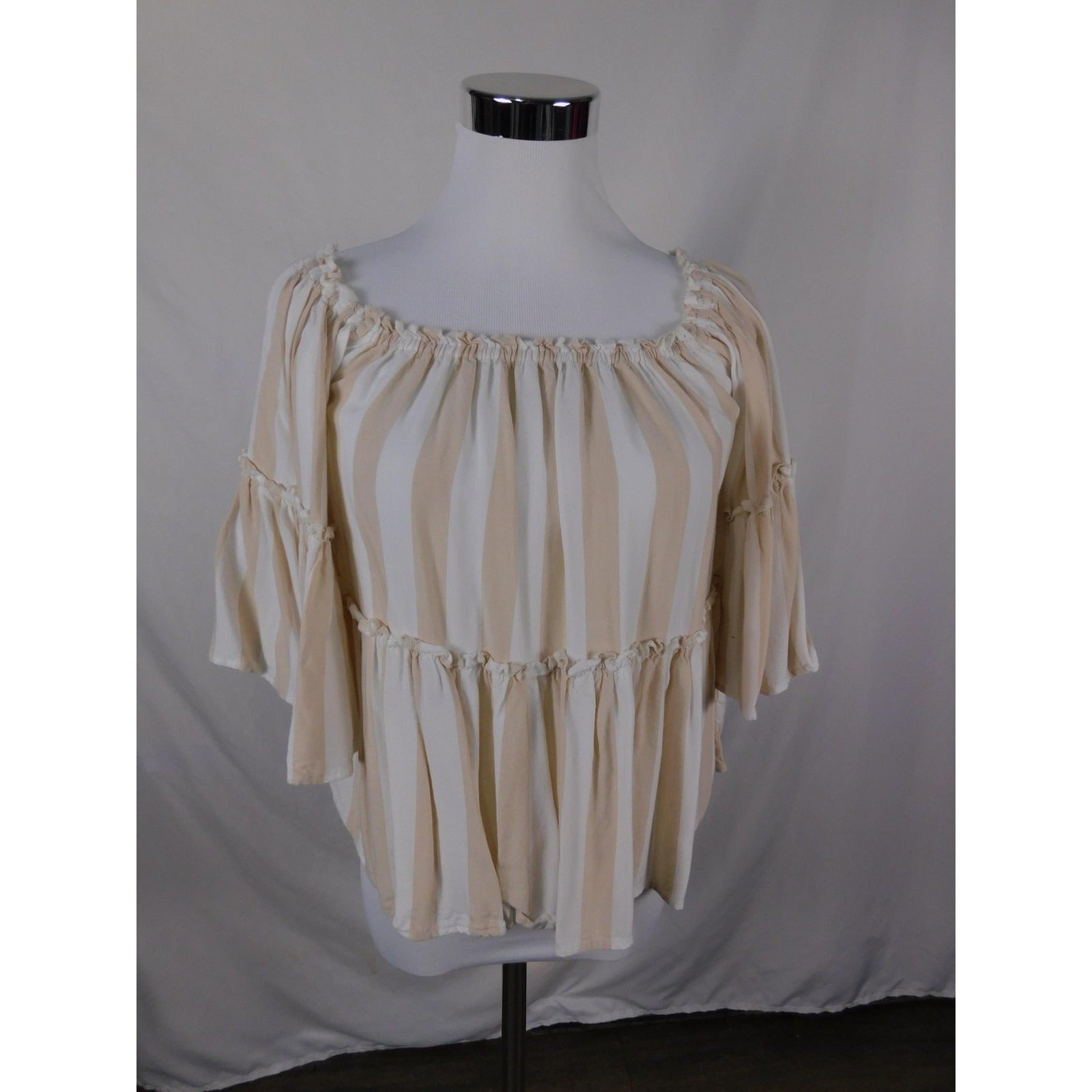 American Eagle Shirt Womens XS Beige White Stripe Off Shoulder Peasant Boho Top