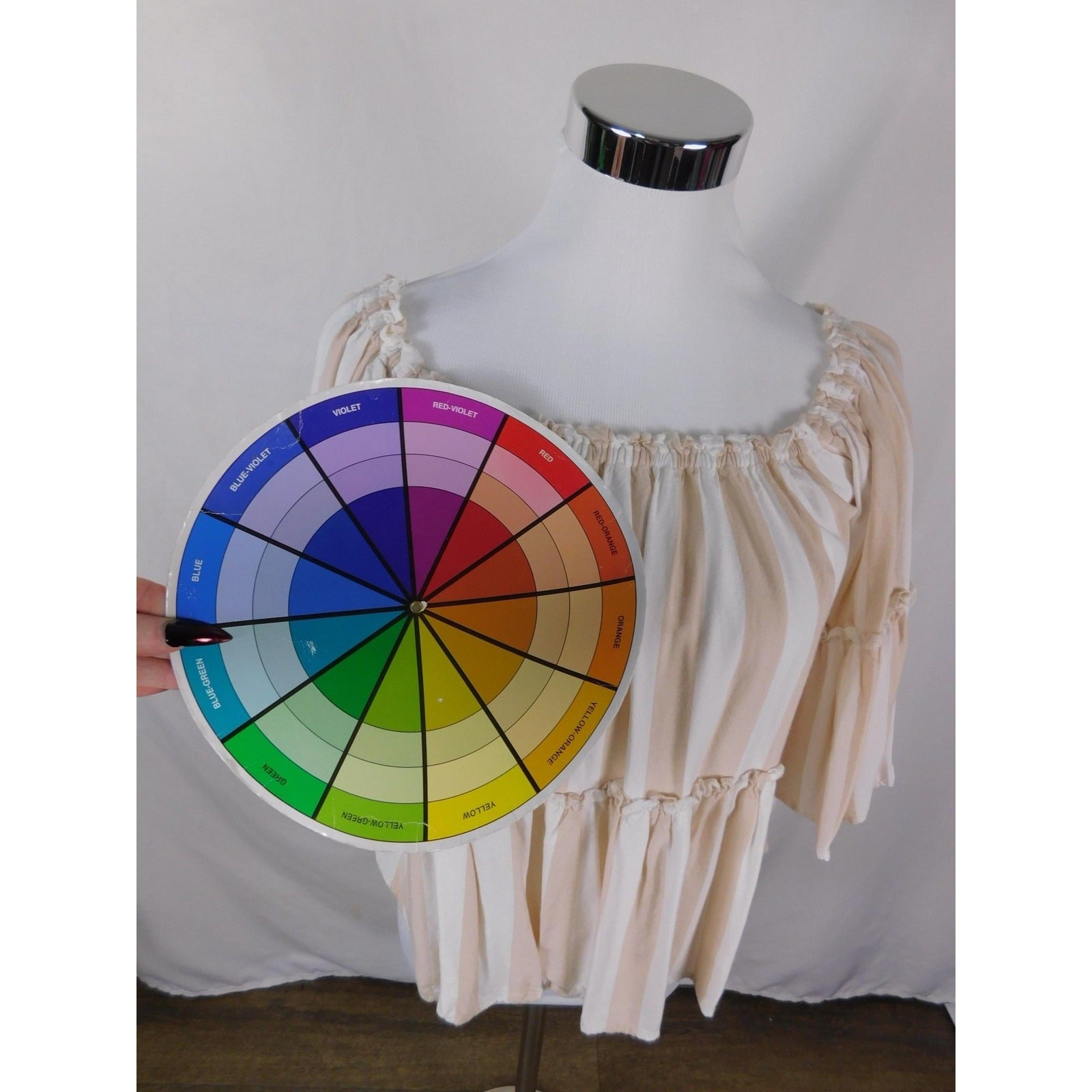 Color: Beige and white stripe.