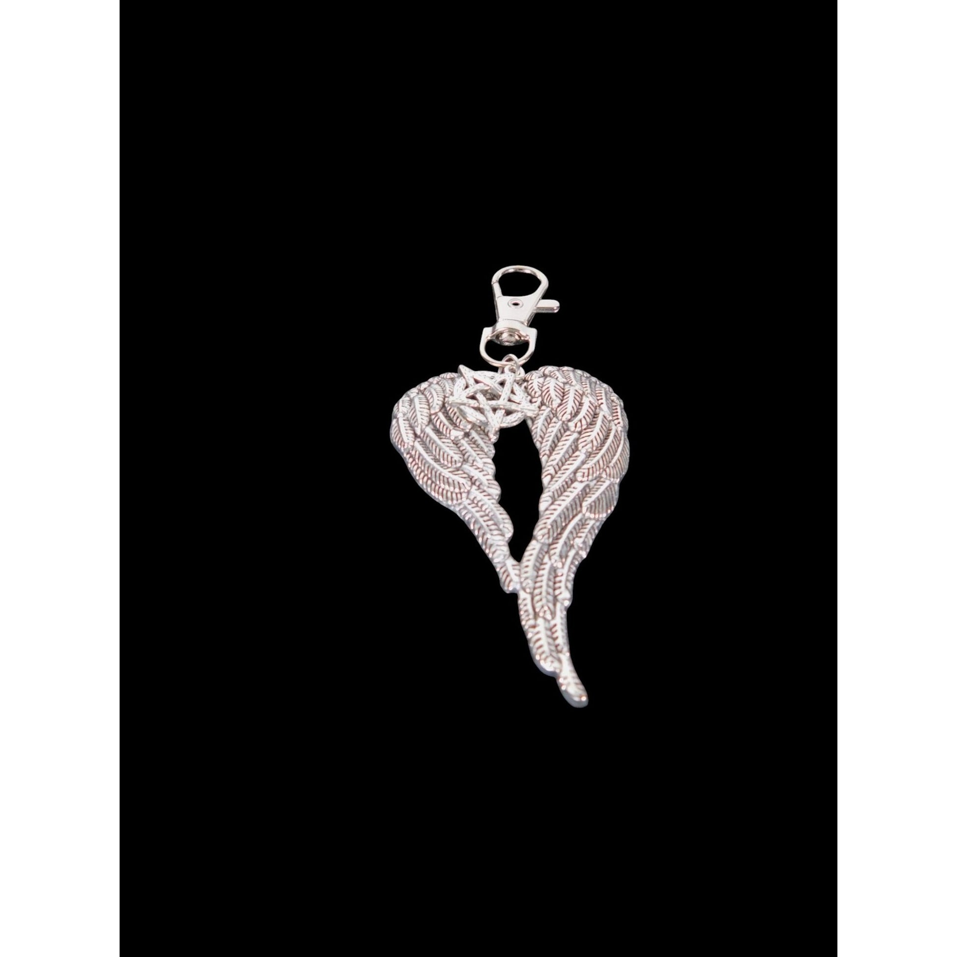 Angel Wing Pentagram Keychain Silver Clip Christian Witch