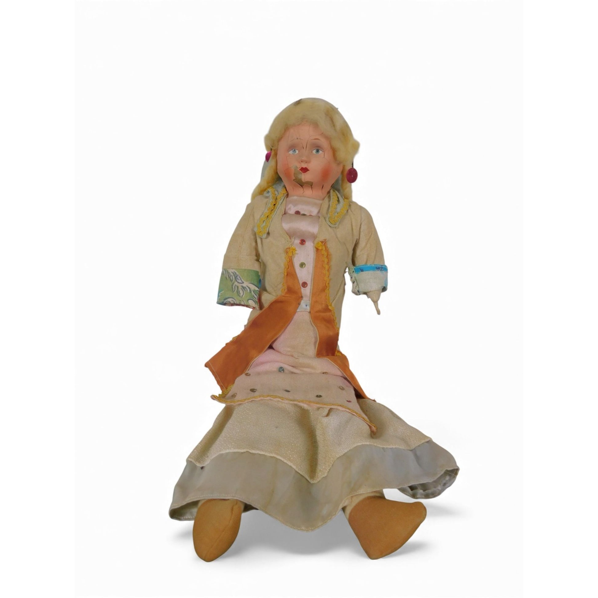 Antique Painted Face Cloth Doll 22" - As-Is Folk Art Poppet - Good