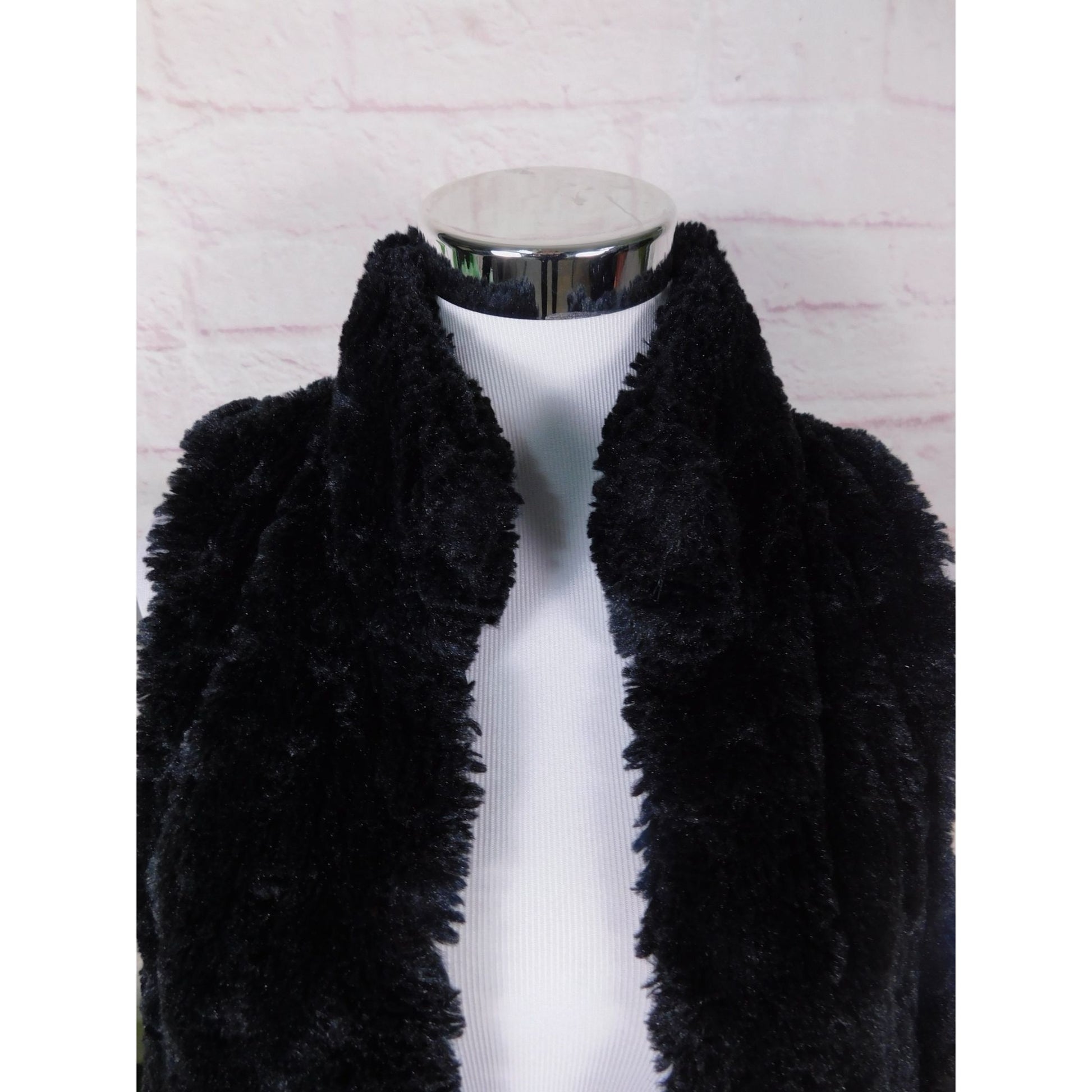 APT 9 Black Faux Fur Vest Soft Plush Lined Pockets Boho Chic S-M