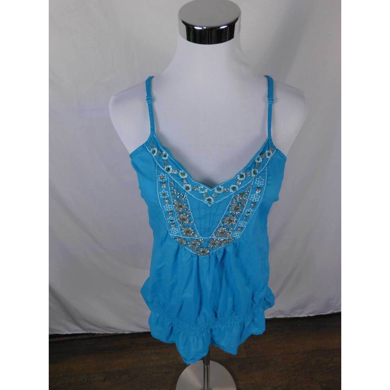 Apt 9 Turquoise Beaded Boho Tank M - Ruffle Hem Embellished - Excellent